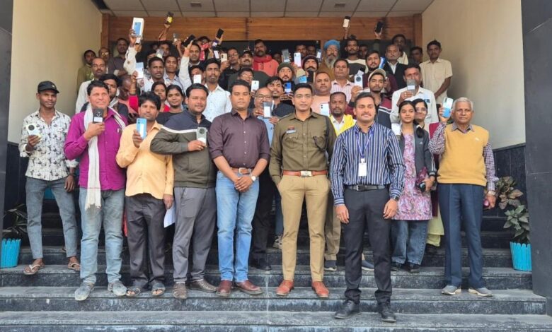 एसीसीयू (साइबर सेल) बिलासपुर एवं शहर के विभिन्न थानो द्वारा आम जनों के गुम हुये 100 नग मोबाईल कीमती लगभग 20 लाख रूपये बरामद कर संबंधितो को सौपने चलाया गया चेतना अभियान।