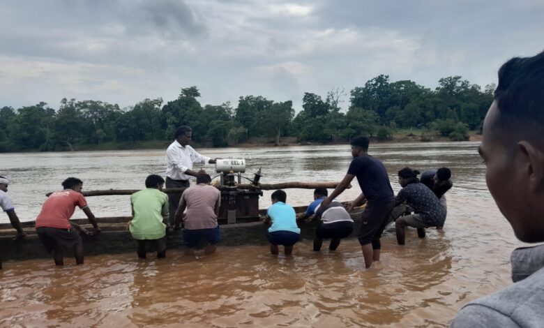 जानकारी मिली की 25 अगस्त 23 को कोटरी नदी में डोंगी में सवार लोगों के बीच लगभग 350 किलो का यह ट्रांसफार्मर भी है। लगभग 20 – 30 घरों वाले गाँव बांगोघोड़िया में खराब ट्रांसफार्मर को बदला जाना है। सीएसपीडीसीएल के अधिकारी और उनके लाइन स्टॉफ के लोग और कुछ स्थानीय ग्रामीण भी डोंगी में सवार हैं। नदी नाले के उफान में होने के कारण गाँव का सड़क संपर्क सभी तरफ से टूट गया था। ऐसे में गाँव में नया ट्रांसफार्मर पहुँचाने के लिए बीच में पड़ने वाले कोटरी नदी को पार करना ही एक मात्र रास्ता था। नदी पार कराने के लिए वहाँ कोई बड़े जेट्टी का नहीं बल्की स्थानीय लोगों का सहारा डोंगी ( छोटी नाव) था। स्थानीय ग्रामीणों की मदद से डोंगी में लाए गए इस ट्रांसफार्मर को ट्रेक्टर में भर कर गाँव में ले जाया गया। उसके बाद बिजली कंपनी के लोगों ने उस नए ट्रांसफार्मर को बिना समय गंवाए बदलकर गाँव की बिजली आपूर्ति बहाल की। विद्युत कंपनी के कर्मचारियों की इस जीवटता को ग्रामीणों ने भी सराहा। और ठीक भी है अच्छे कार्य की सराहना तो होनी ही चाहिए।