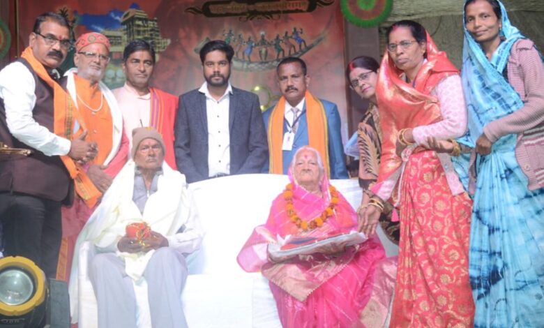 माघी पूर्णिमा मेले के मंच पर पालिकाध्यक्ष लवकुश कश्यप के विशेष पहल पर नगर के दस गणमान्य नागरिकों( सियान सियानीन)को सपत्नीक शाल श्रीफल तथा मेलहई उपहार प्रदान कर सम्मान किया गया, इसके पहले पालिकाध्यक्ष लवकुश द्वारा मंचासिन समस्त वरिष्ठ जनों को आत्मीयता से तिलक लगाकर,चरण छूकर उनका आशीर्वाद लेते हुए बताया कि मंचासीन इन देव रूपी सियानाें का सम्मान करना मेरे जीवन का सर्वश्रेष्ठ पल है,जिन्हे कभी नही भूल पाऊंगा, सम्मानित होने वालों में नगर के वरिष्ठ पत्रकार श्री माणिक लाल श्रीमती राधा सोनी ,किशन लाल श्रीमती माहेश्वरी तंबोली,मनोहर लाल श्रीमती अनुज चंदेल, के आर कौशिक श्रीमती सुशीला देवी, चुन्नी लाल सोनी श्रीमती द्रौपदी सोनी ,परदेशी पटेल श्रीमती हेम कुंवर पटेल,हबीब खान श्रीमती फिरोजन बी,मिलन सिंह श्रीमती गायत्री देवी, पवन यादव श्रीमती पहरतीन बाई, शामिल थे,