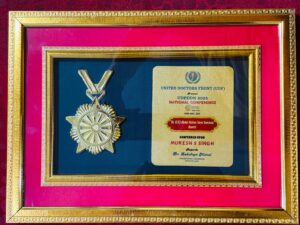 सम्मान प्राप्ति के बाद समारोह के अन्य अतिथियों के साथ मंच साझा करते मुकेश एस. सिंह; मंच पर मौजूद रहीं देश की चिकित्सा, विधि और मानसिक स्वास्थ्य क्षेत्र की जानी-मानी हस्तियां।