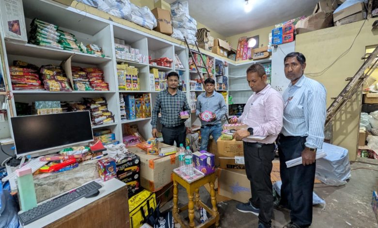 डेली नीड्स दुकान की आड़ में भारी मात्रा में अवैध पटाखों का संग्रहण किया गया था | शिकायत प्राप्त होने पर टीम द्वारा निरीक्षण में नीचे फ्लोर पर खाद्य सामग्री , डेली नीड्स की दुकान पाई गई और ऊपरी फ्लोर में भारी मात्रा में पटाखे संग्रहित कर रखे पाए गए | पुराना नगर पालिका कॉम्प्लेक्स एवम मिशन हॉस्पिटल कंपाउंड के 5 गोदामों में अवैध रूप से 103 कार्टून में पटाखा बरामद किया गया | टीम द्वारा दस्तावेज की मांग किए जाने पर किसी तरह के कागजात प्रस्तुत नहीं करने से जप्त पटाखों को सील करने की कार्यवाही की गई | आगामी त्योहारों के मद्देनजर खाद्य पदार्थों की भी जांच की गई | दुकान संचालक द्वारा बिना एक्सपायरी डेट की फफूंद लगा हुआ रसगुल्ला बिक्री करते पाए जाने पर अन्य खाद्य सामग्री की जांच करने पर एकस्पायर्ड खाद्य सामग्री प्राप्त होने पर वासुदेव स्टोर्स दुकान को सील किया गया | 3 घंटे चली कार्यवाही में एसडीएम तखतपुर ज्योति पटेल , तहसीलदार पंकज सिंह , नायब तहसीलदार रोशनी तिर्की , खाद्य निरीक्षक श्याम वस्त्रकार एवम राजस्व विभाग एवं खाद्य विभाग के कर्मचारी उपस्थित थे |